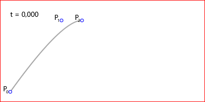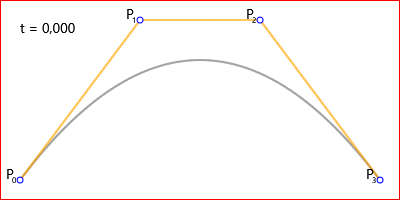 Далее посмотрим на анимацию построения кривых Безье (точка t плавно двигается по кривой).