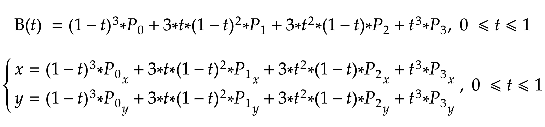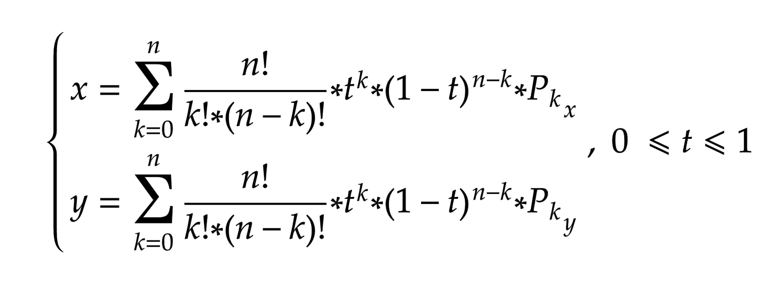 Кривая Безье записывается следующим параметрическим выражением: