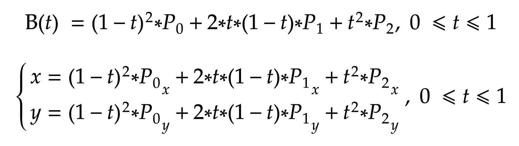 Уравнение кривой Безье 2-го порядка: